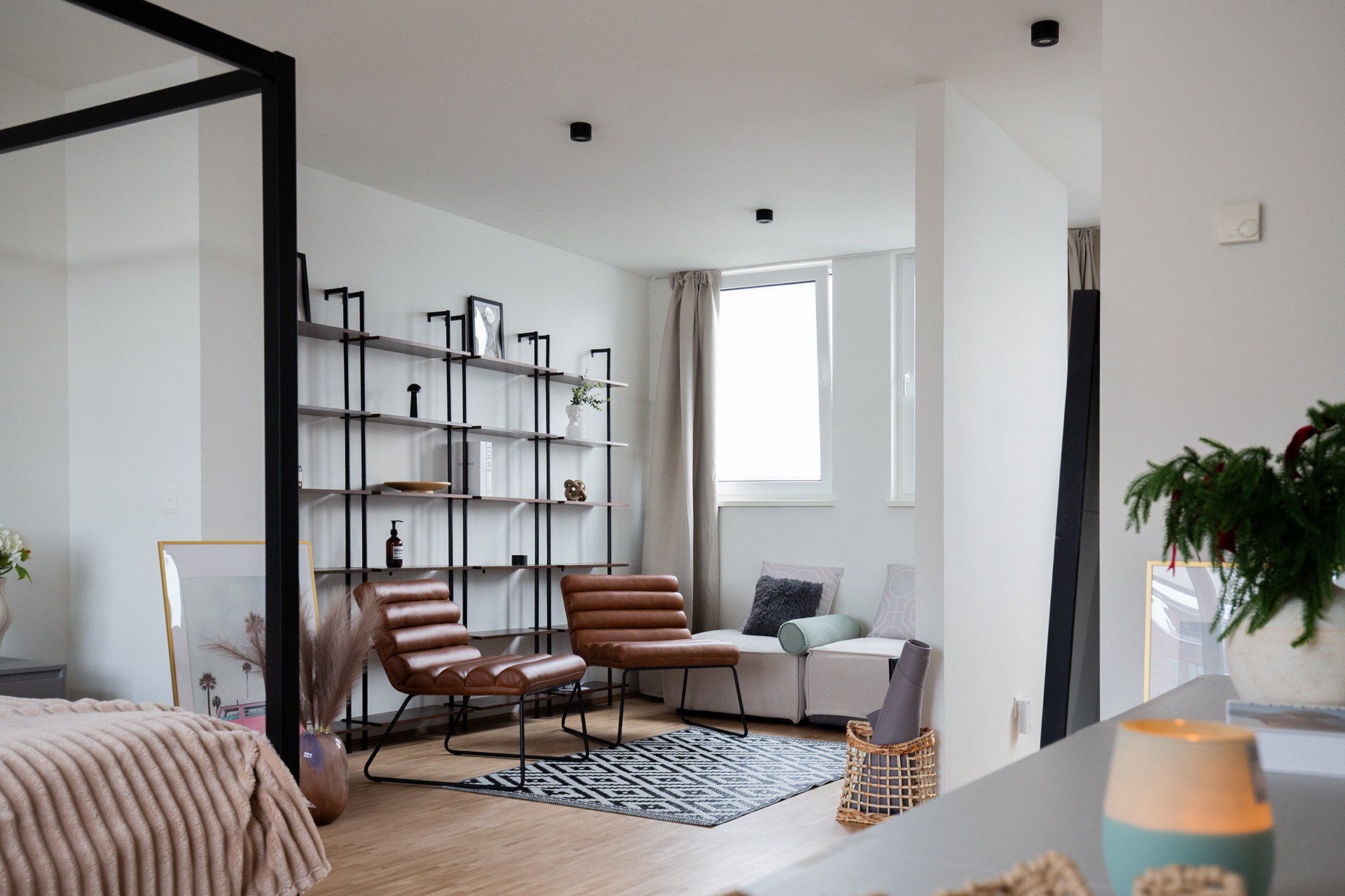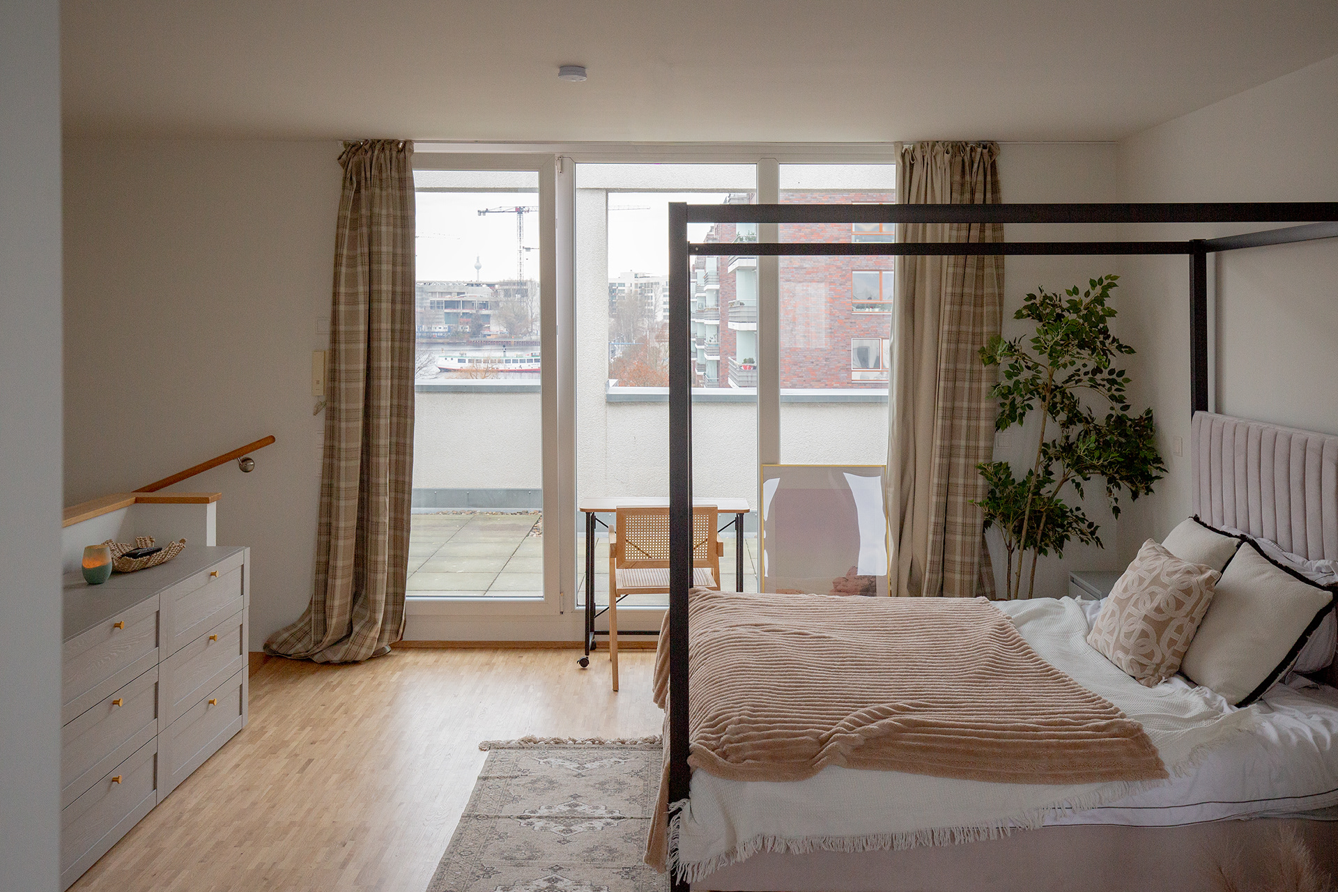 Der zentrale Eingriff bestand in der Sanierung und Erweiterung des Daches sowie in der Einbeziehung einer der beiden bestehenden Terrassen in das beheizte Raumvolumen. Dadurch konnte das Dachgeschoss vollständig neu organisiert und in eine großzügige Master-Suite umgewandelt werden.