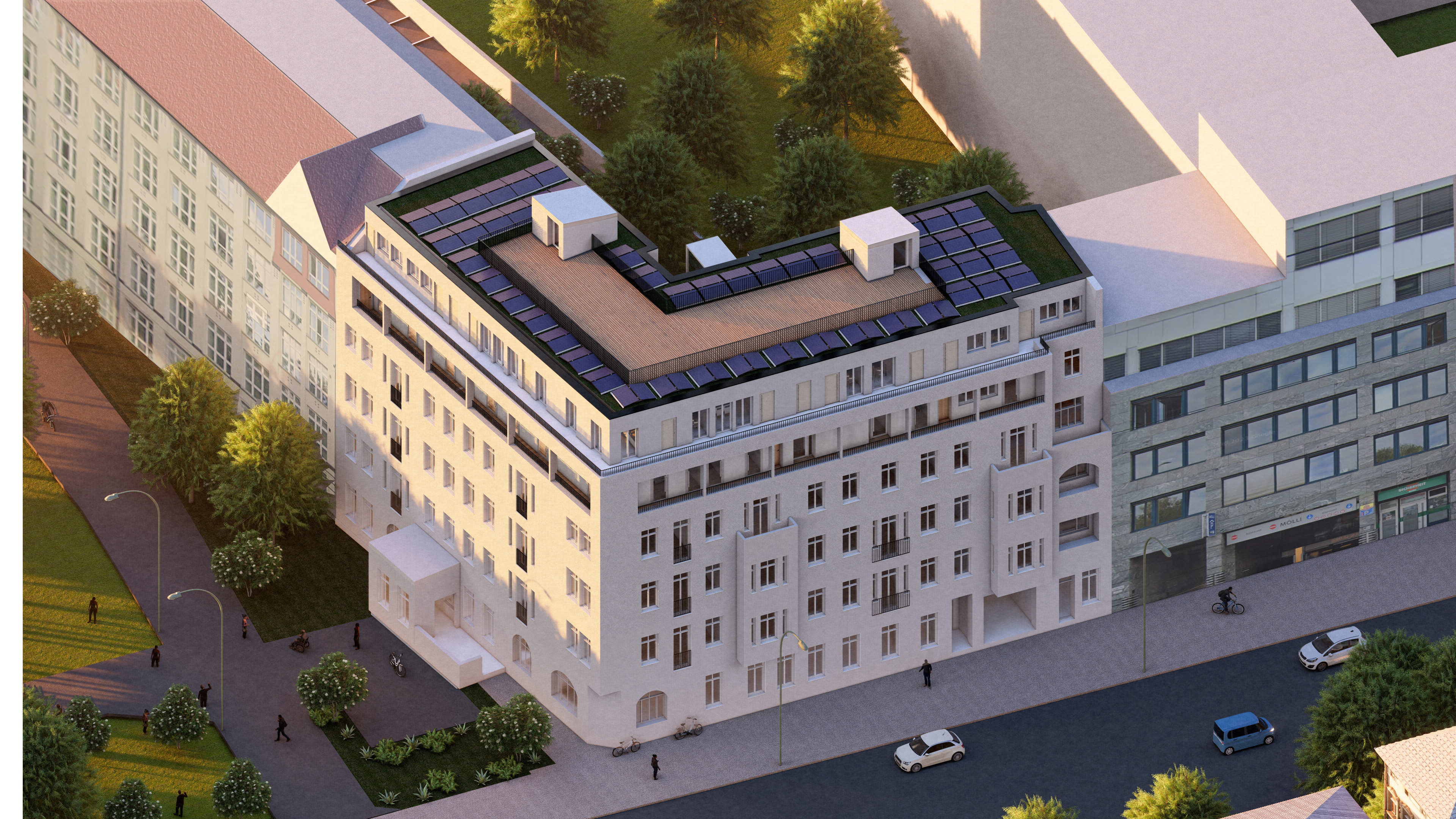 The extension consists of 2 levels on 4.OG & 5.OG with apartments ranging from 60 to 100 m² on lower level and compact apartments from 25 to 40 m² on the upper level, with a long communal terrace the wraps around the building volume.