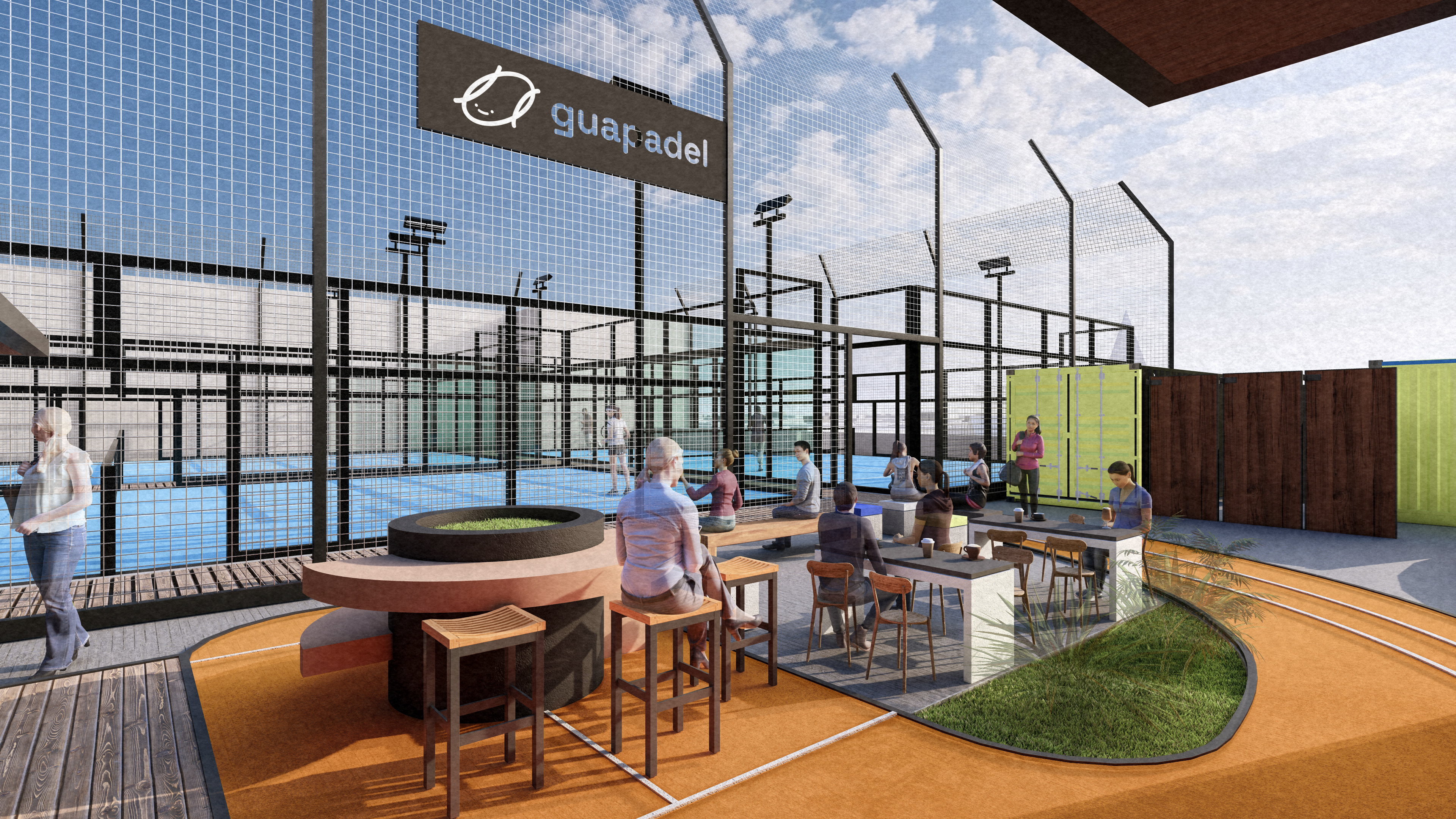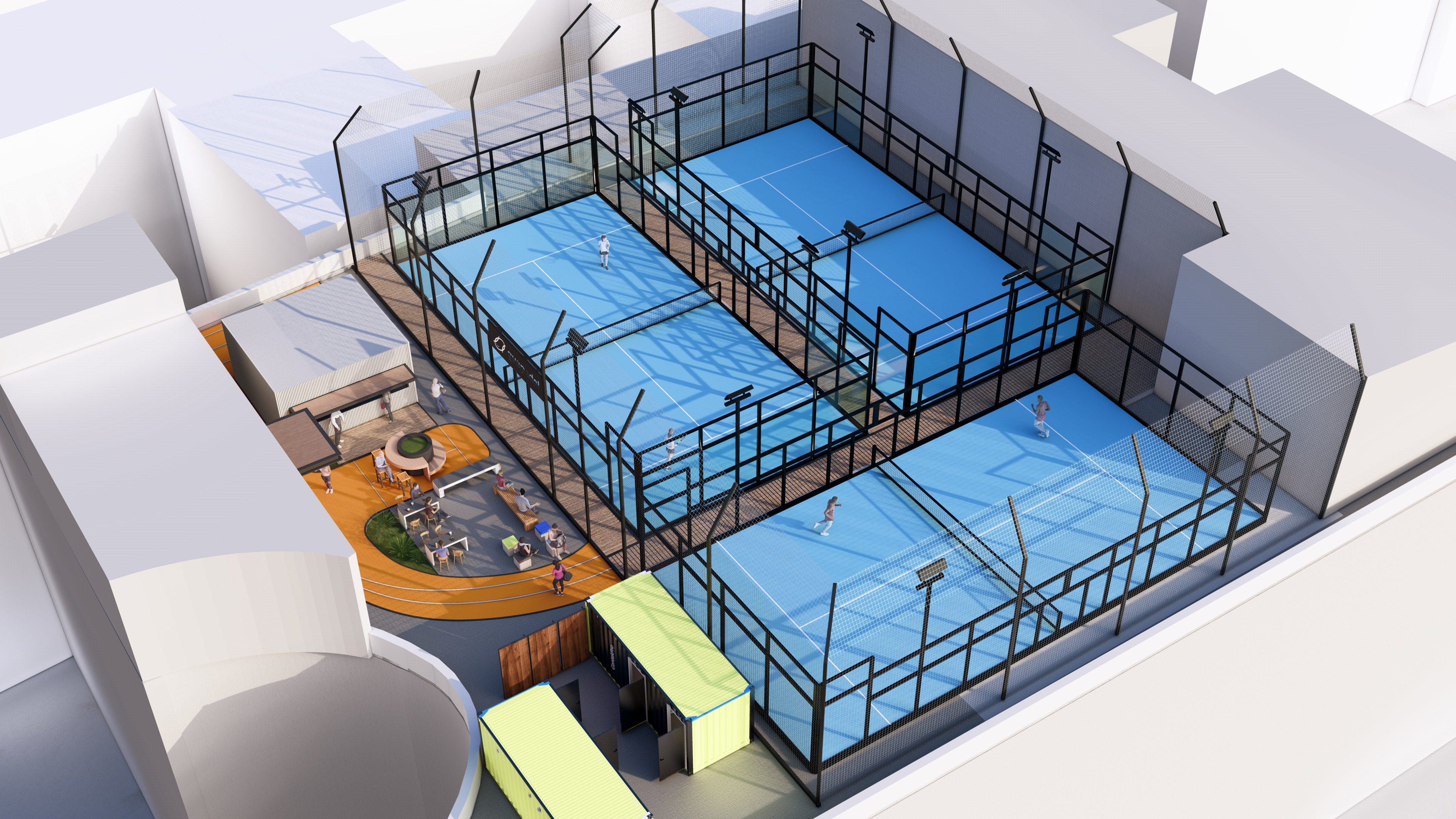 Dieses Projekt verwandelt ein bislang wenig genutztes urbanes Dach in einen lebendigen sozialen und Freizeit-Ort, der dem Padelspiel gewidmet ist – einer der am schnellsten wachsenden Sportarten der Stadt. Indem Sport und Freizeit über der Stadt angesiedelt werden, fügt das Projekt der urbanen Skyline eine neue Aktivitätsebene hinzu und verwandelt ein ansonsten statisches Dach in einen dynamischen Ort für Bewegung und Begegnung. Das Design umfasst drei Padelplätze, umgeben von Sitzbereichen, Aufwärmzonen, Umkleidemöglichkeiten sowie einem Kiosk-Café, das direkt zu den Plätzen hin geöffnet ist. Obwohl es sich in erster Linie um eine Sportanlage handelt, schafft die Anordnung der Plätze ein ausgewogenes Verhältnis zwischen Spiel und Ruhe. Leichte Stahlkonstruktionen und transparente Umfassungen vermitteln ein Gefühl von visueller Offenheit und Verbindung nach außen. Vorgefertigte Elemente und modulare Einheiten verleihen dem Projekt einen pragmatischen und anpassungsfähigen Charakter. Über sein Programm hinaus fungiert das Projekt als Erweiterung der Stadt, als offene Plattform, auf der Sport und Alltagsleben miteinander verschmelzen.