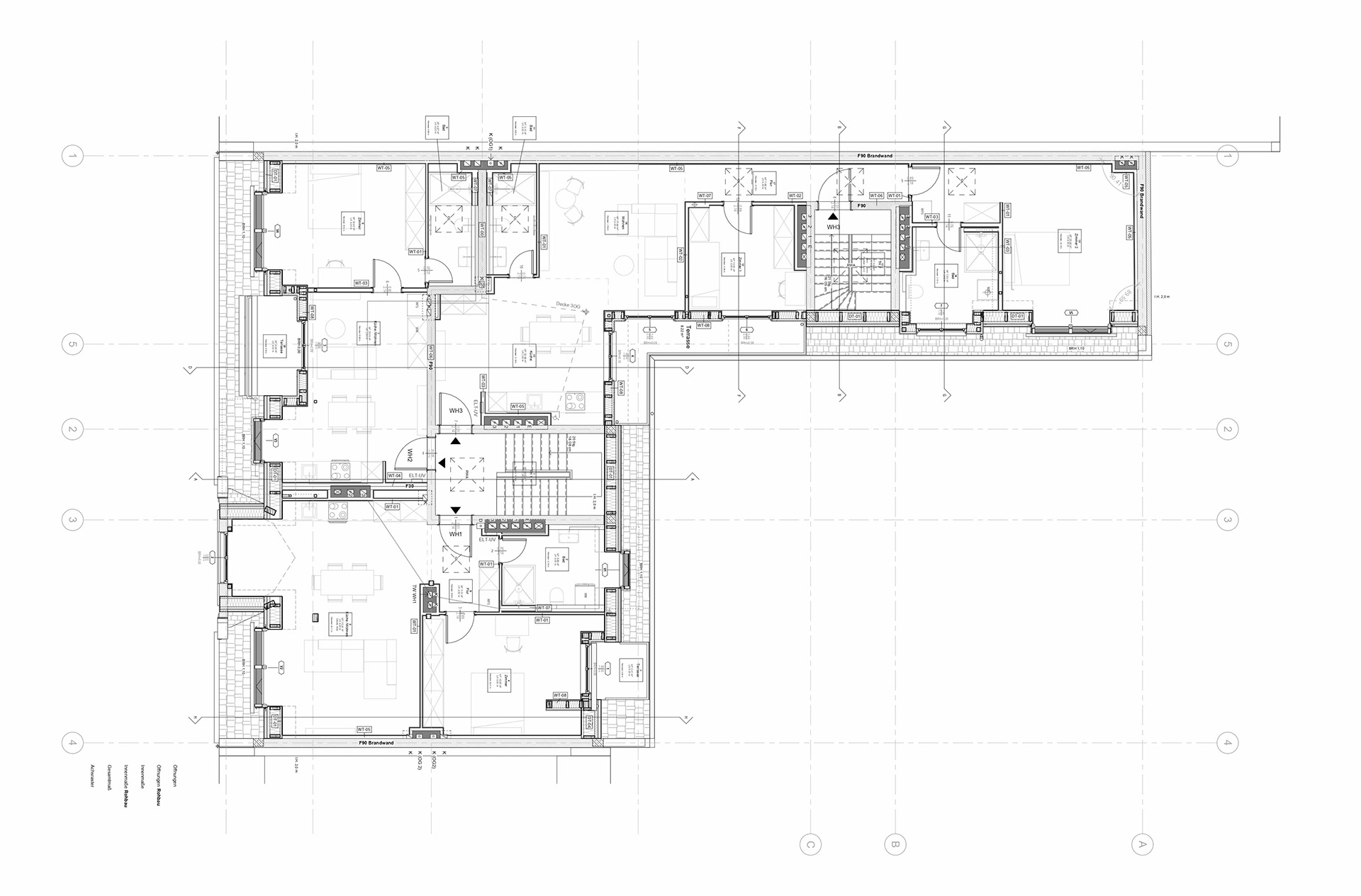 The client decided to implement an attic project already approved by the Reinickendorf district office by another firm, while making a few changes. The main goal was to increase the number of apartments from two to three and to submit a revision to adapt the existing building permit. The structure of the project consists mainly of wood, supplemented by individual steel elements. It rests directly on the existing wooden beam ceiling and is connected to a surrounding reinforced concrete ring that distributes the loads evenly. Central themes of the project were the planning of drainage and fire protection, as both were crucial to the success of the project.