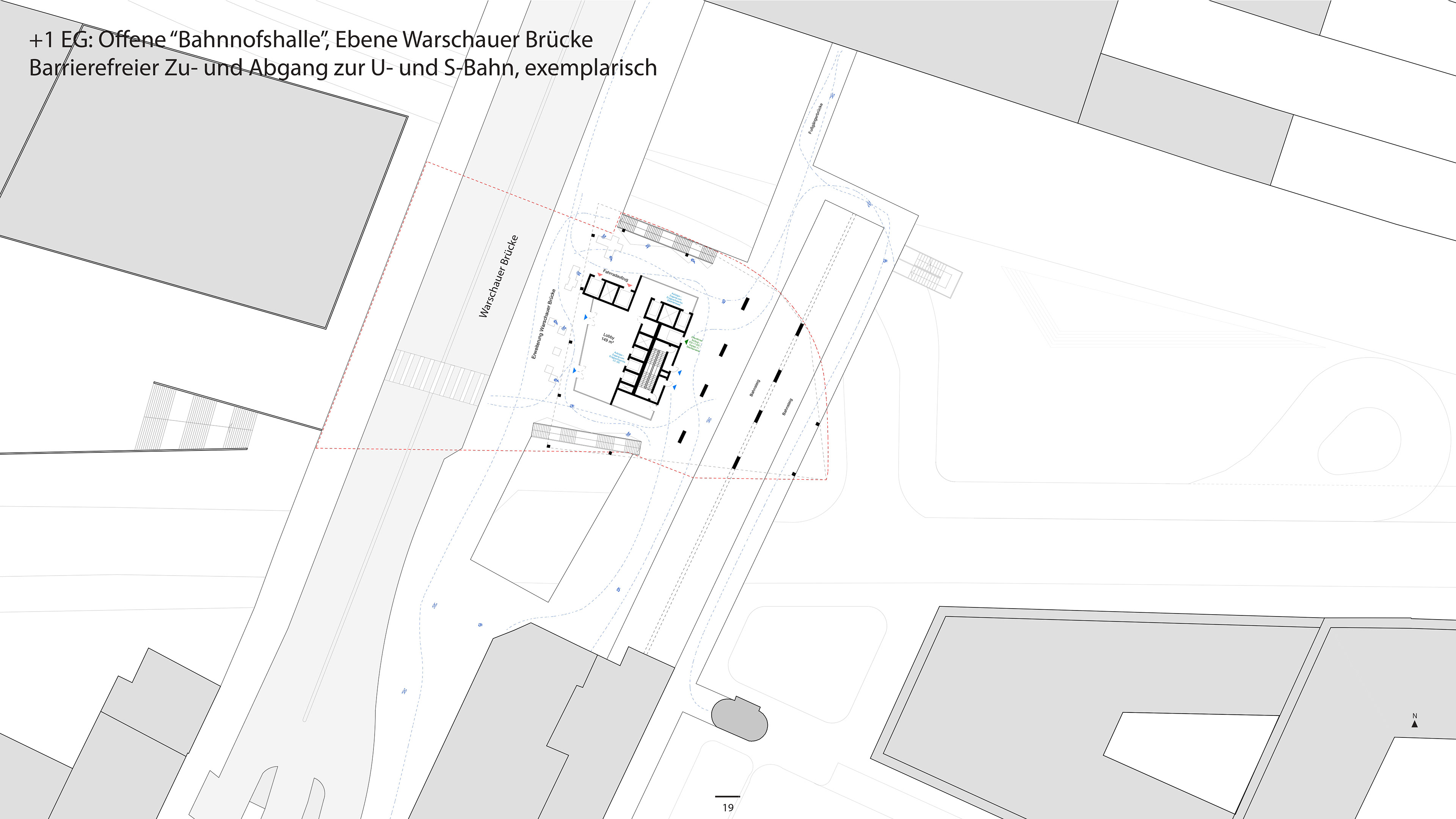 Developed in collaboration with COBE Berlin GmbH (Prof. Dr. Vanessa Carlow, architect and urban planner), The Hub addresses urban challenges of mobility, architectural visibility, and spatial quality at one of Berlin’s major transport nodes. The project envisions a multifunctional high-rise building integrated into a sustainable mobility infrastructure, located between Friedrichshain and Kreuzberg and connecting both the S-Bahn and U-Bahn stations. By reinterpreting the public realm, the design links pedestrians and cyclists through direct routes, extends across the Warschauer Bridge, and incorporates a public atrium offering services, a café, rest areas, and information points. With carefully studied heights between 90 and 120 meters — in accordance with Berlin’s Hochhausleitbild and in dialogue with surrounding landmarks — The Hub aims not only to reshape the skyline, but also to activate the urban fabric, strengthen the vibrancy of Warschauer Platz, and serve as a catalyst for the emerging Rudolfband district.
